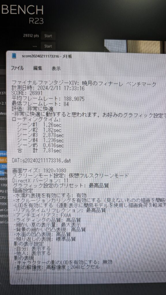 FF14 FHD 最高画質 20391 平均フレームレート 148