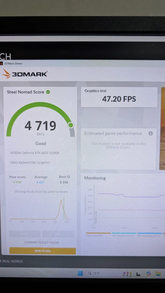 GPUはWQHD向けの最上位モデルです。概ね高画質設定が可能です。
