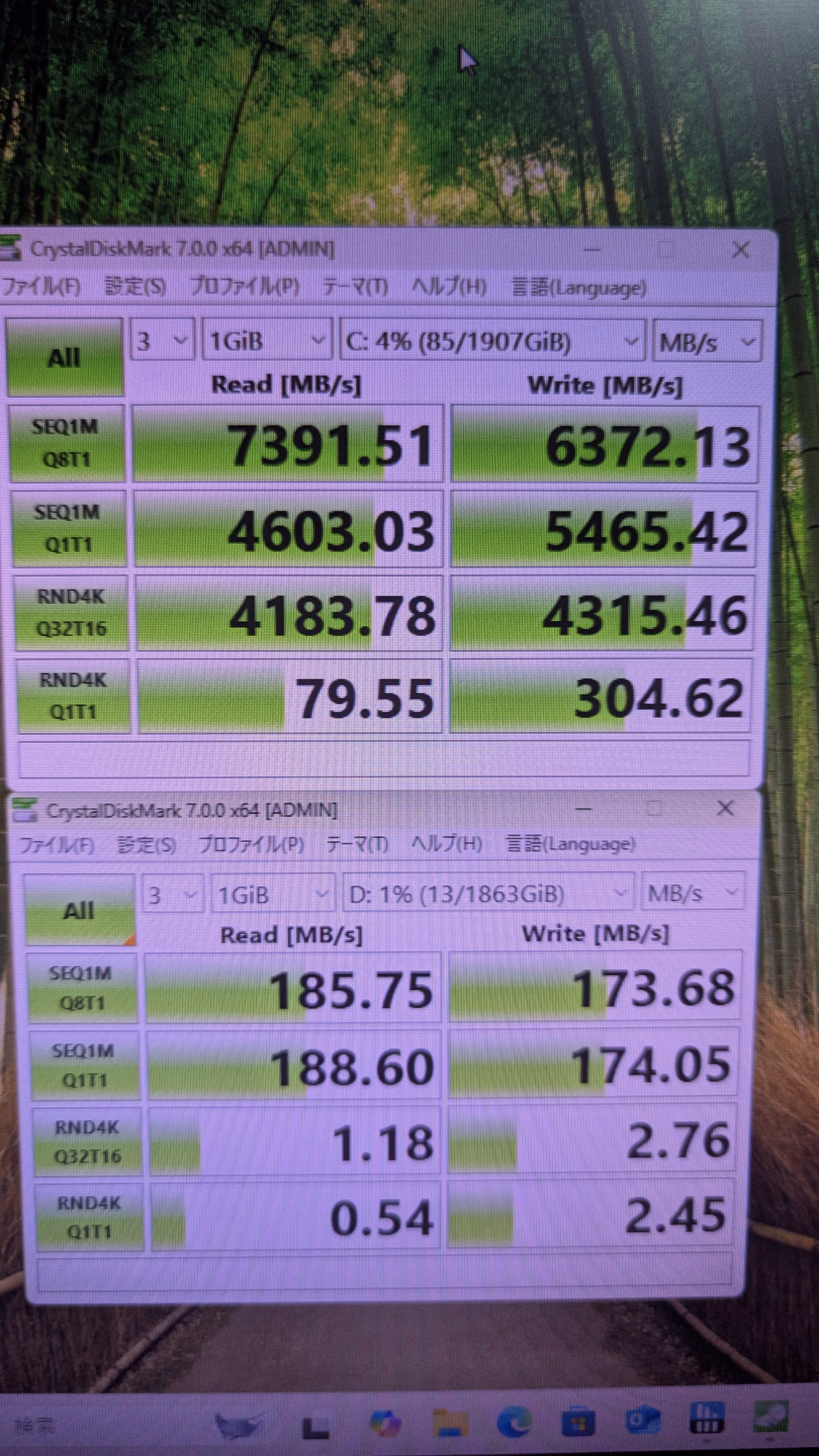 ストレージ読み込み速度 7391 SSD 185 HDD