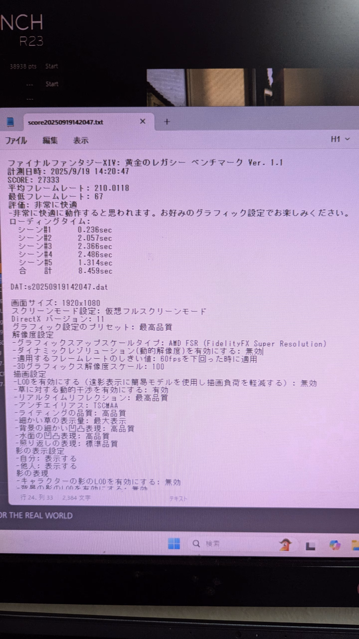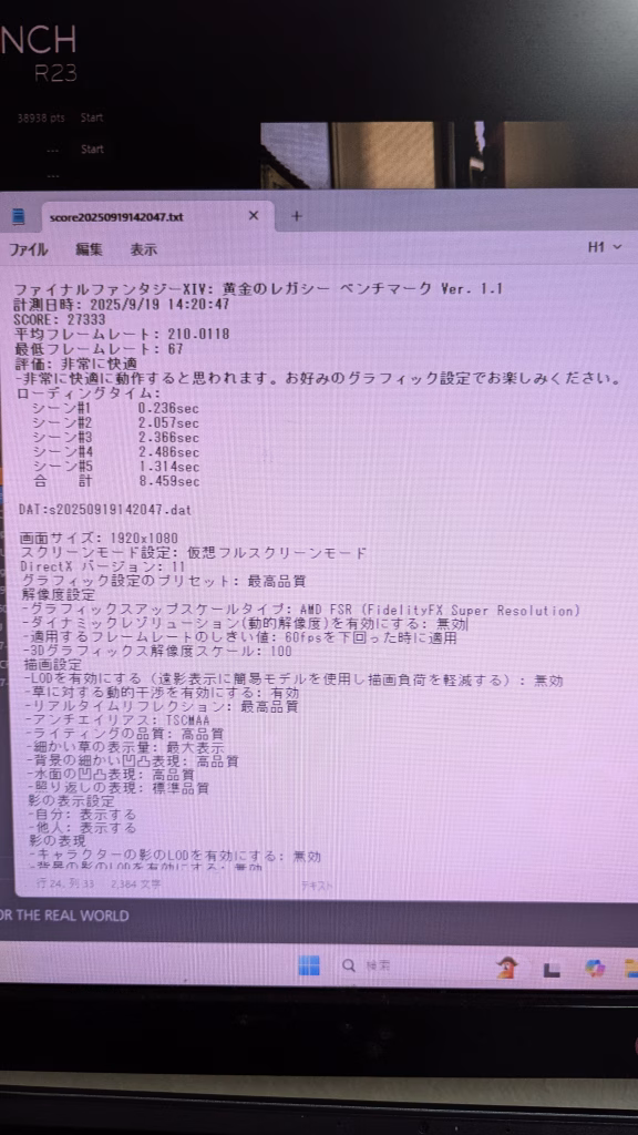 FF14 FHD 最高画質27333 平均フレームレート 210