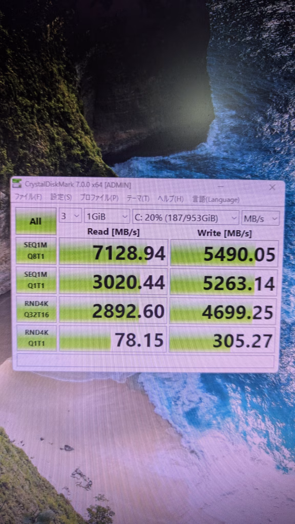 ストレージ読み込み速度 7128 SSD HDDは省略