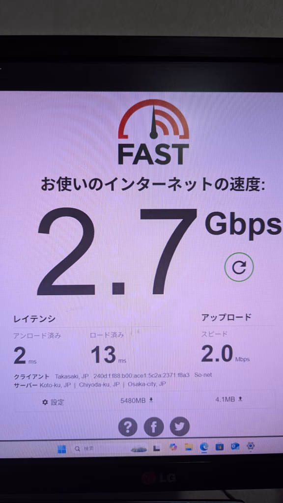 LAN通信速度 画像参照 1つ目有線LAN、2つ目がある場合無線LAN