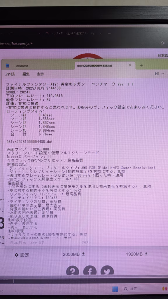 FF14 FHD 最高画質28241 平均フレームレート 210