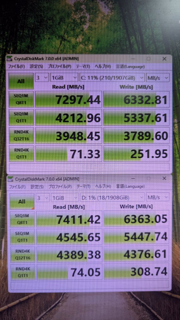 ストレージ読み込み速度 7297 7411 SSD HDDは省略