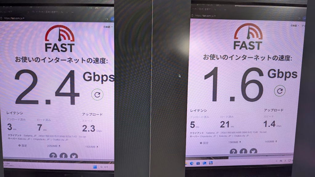 LAN通信速度 画像参照 画像1つ目有線LAN、2つ目がある場合無線LAN