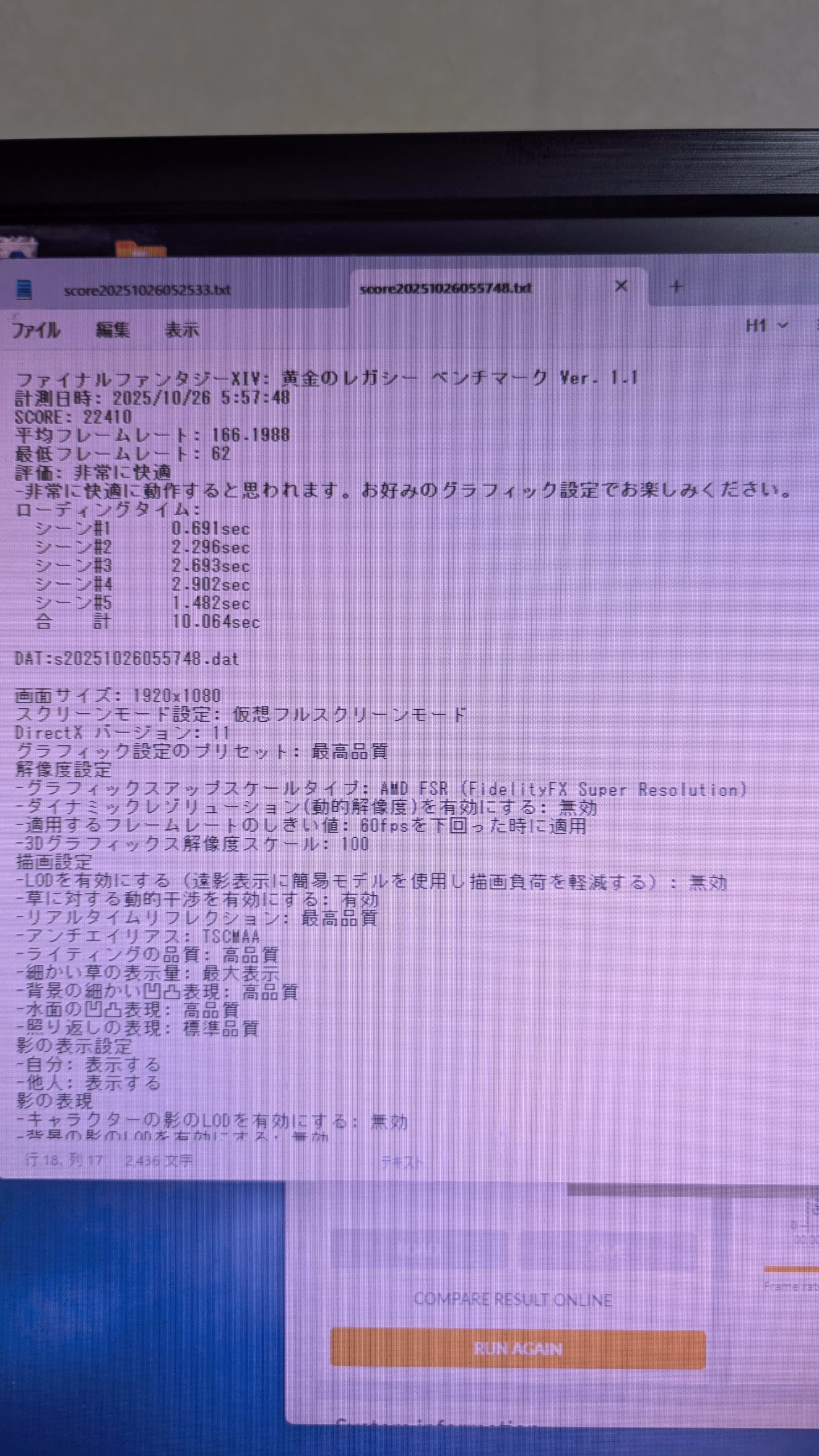 FF14 FHD 最高画質22410 平均フレームレート 166