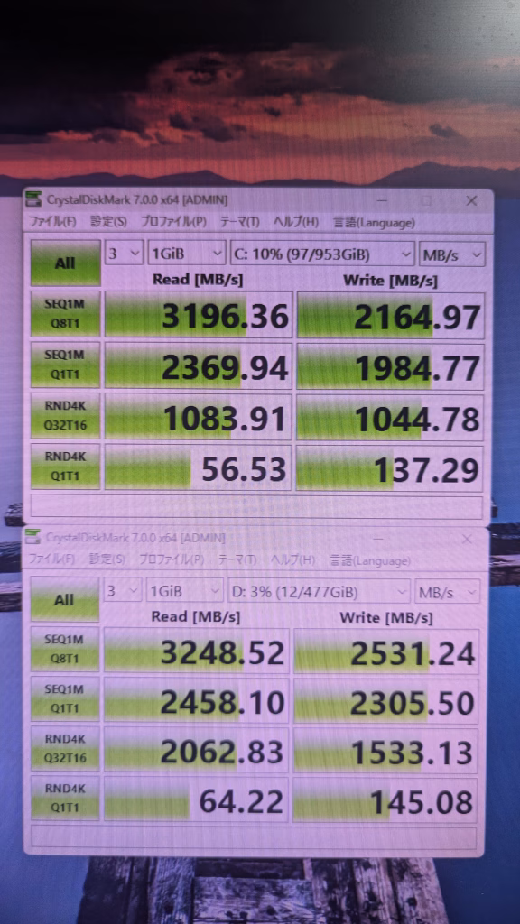 ストレージ読み込み速度 3196 3248 SSD HDDは省略