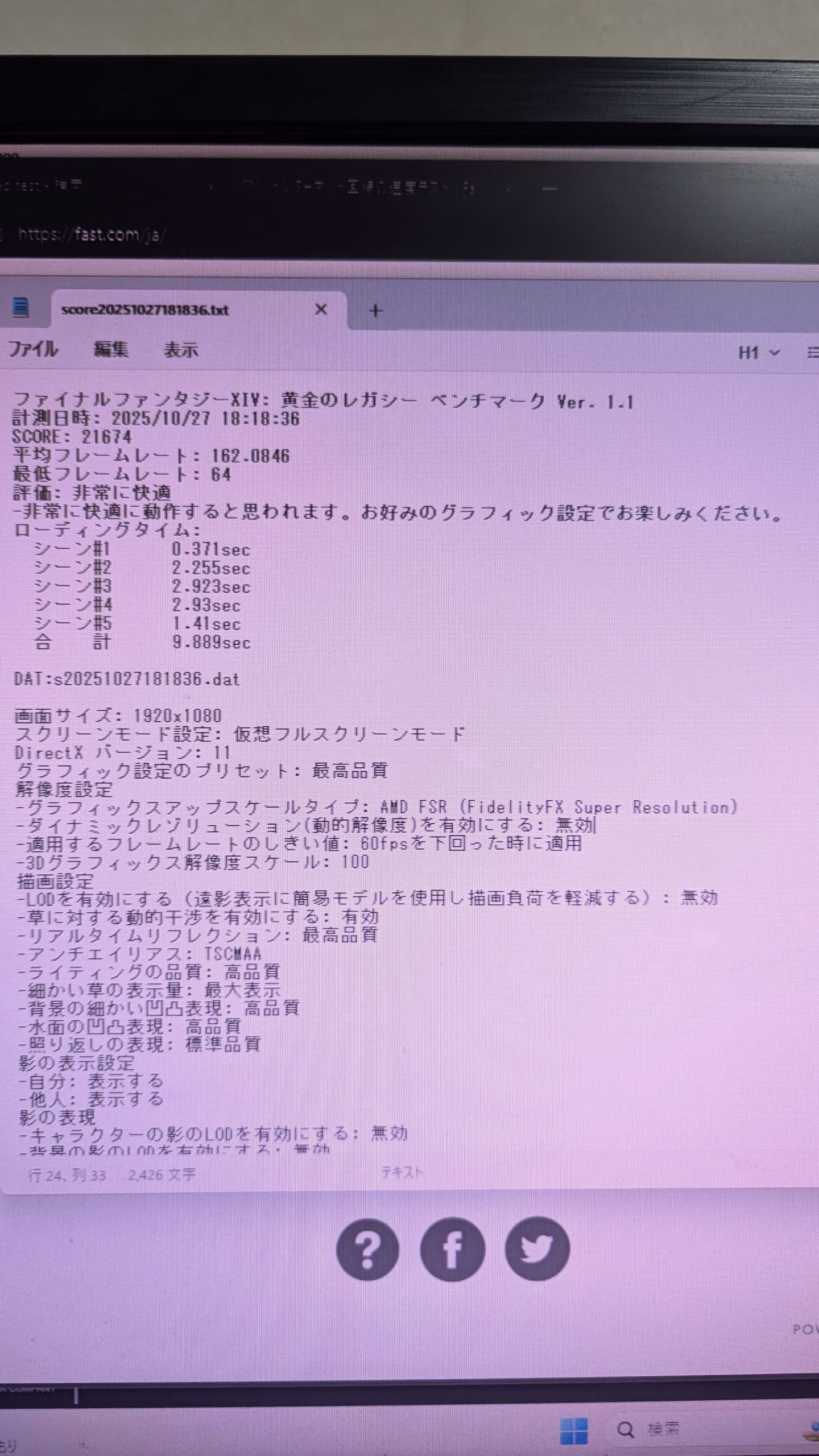 FF14 FHD 最高画質21674 平均フレームレート 162