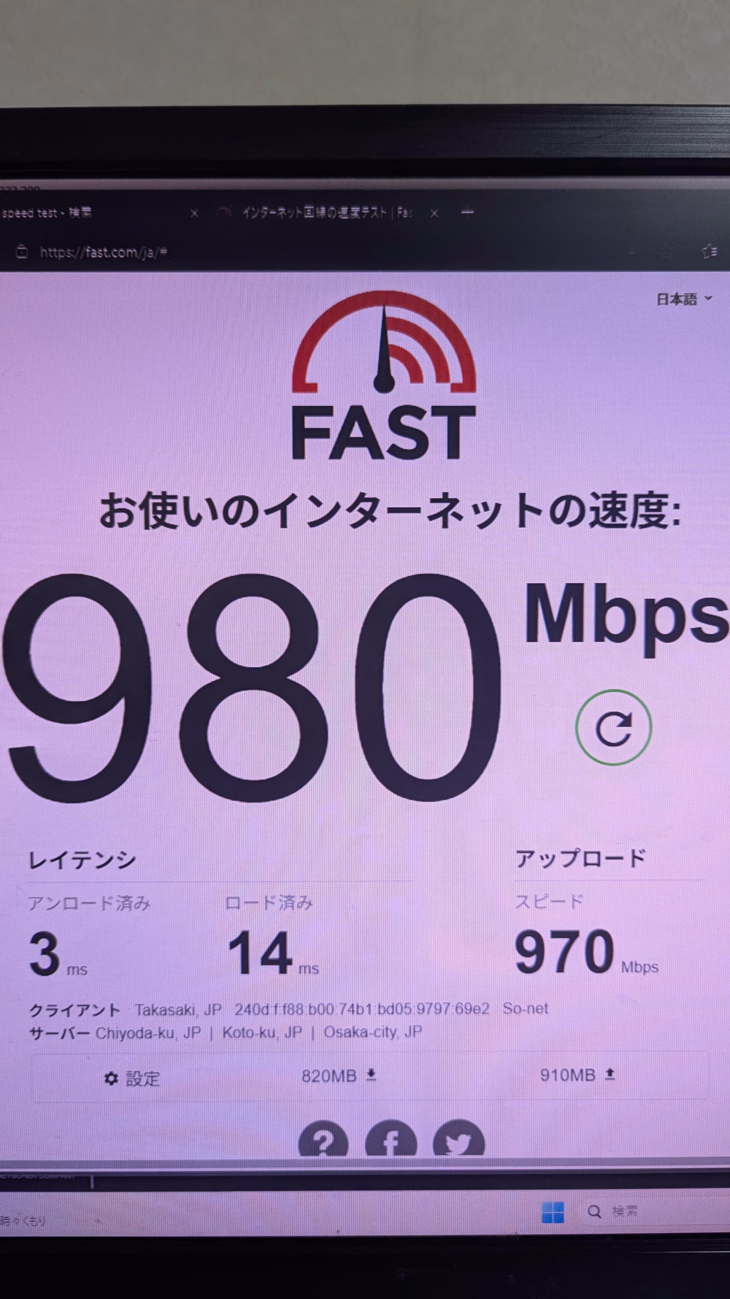 LAN通信速度 画像参照 画像1つ目有線LAN、2つ目がある場合無線LAN