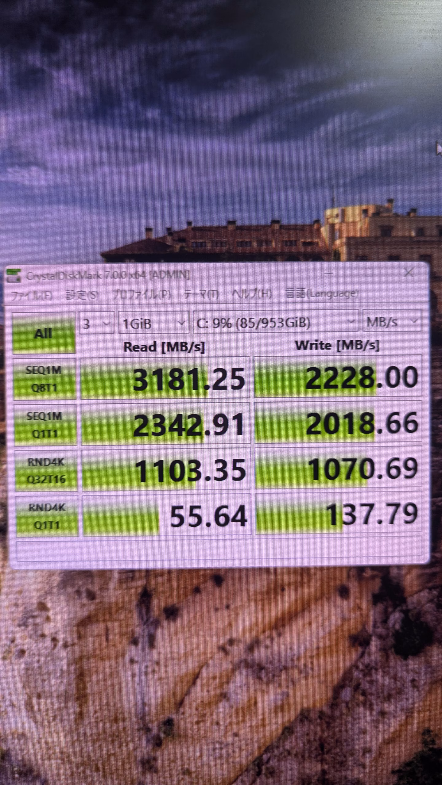 ストレージ読み込み速度 3181 SSD HDDは省略