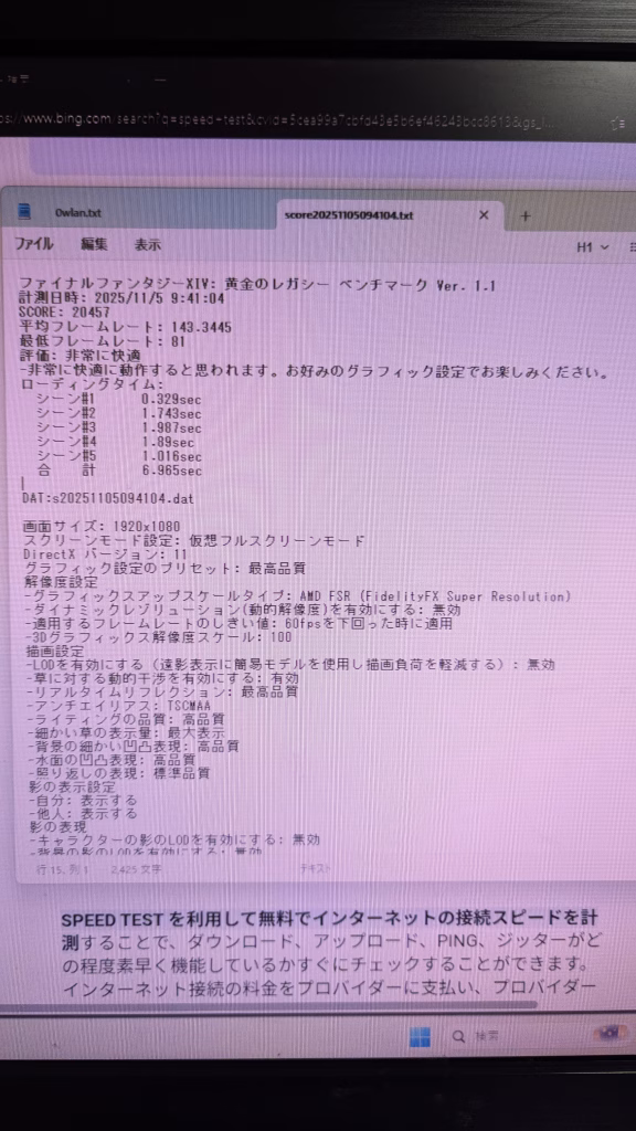 FF14 FHD 最高画質20457 平均フレームレート 143