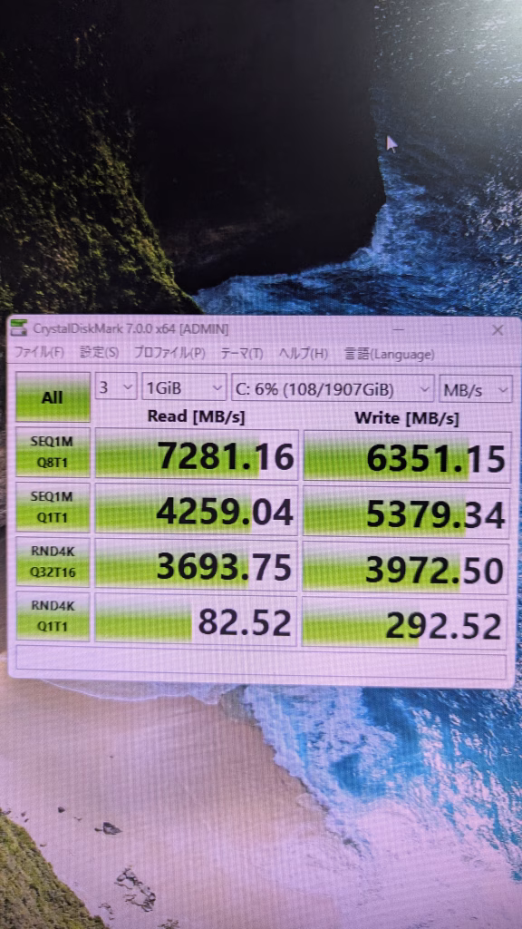 ストレージ読み込み速度 7281 SSD HDDは省略