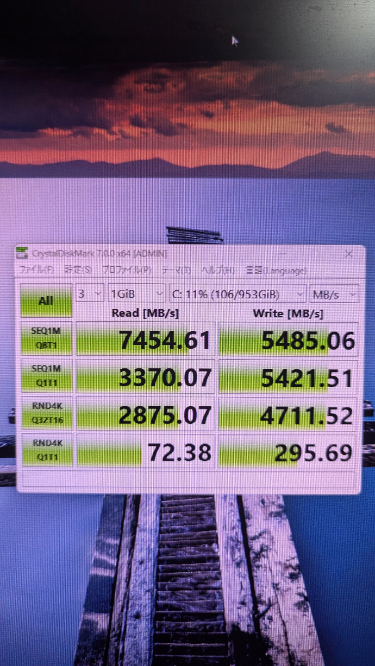 ストレージ読み込み速度 7454 SSD HDDは省略