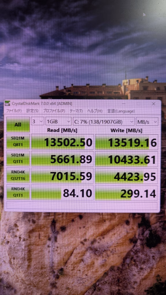ストレージ読み込み速度 13502 SSD HDDは省略