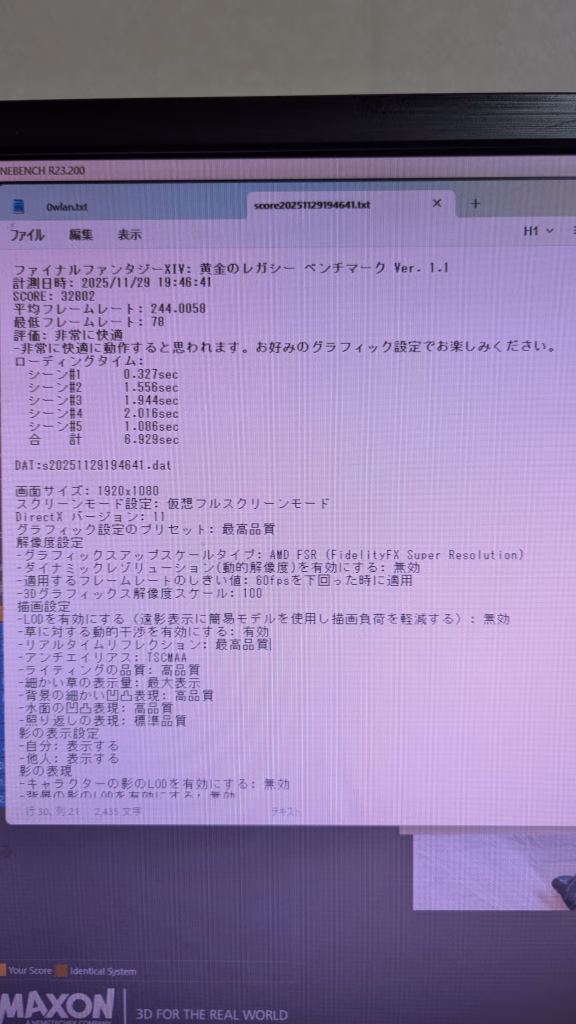 FF14 FHD 最高画質32802 平均フレームレート 244