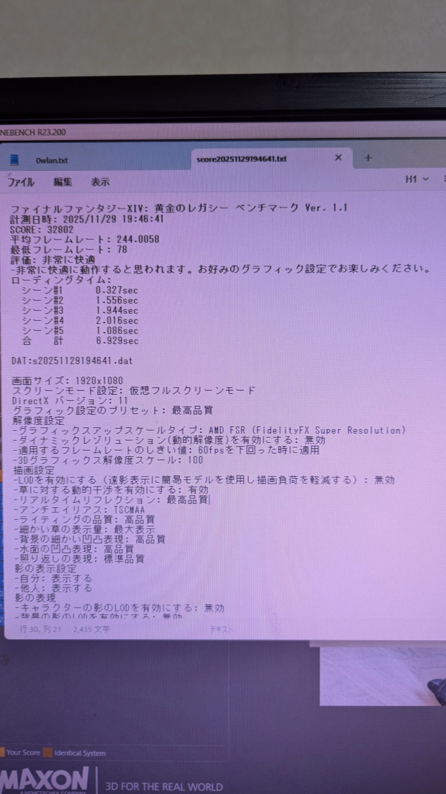 FF14 FHD 最高画質32802 平均フレームレート 244