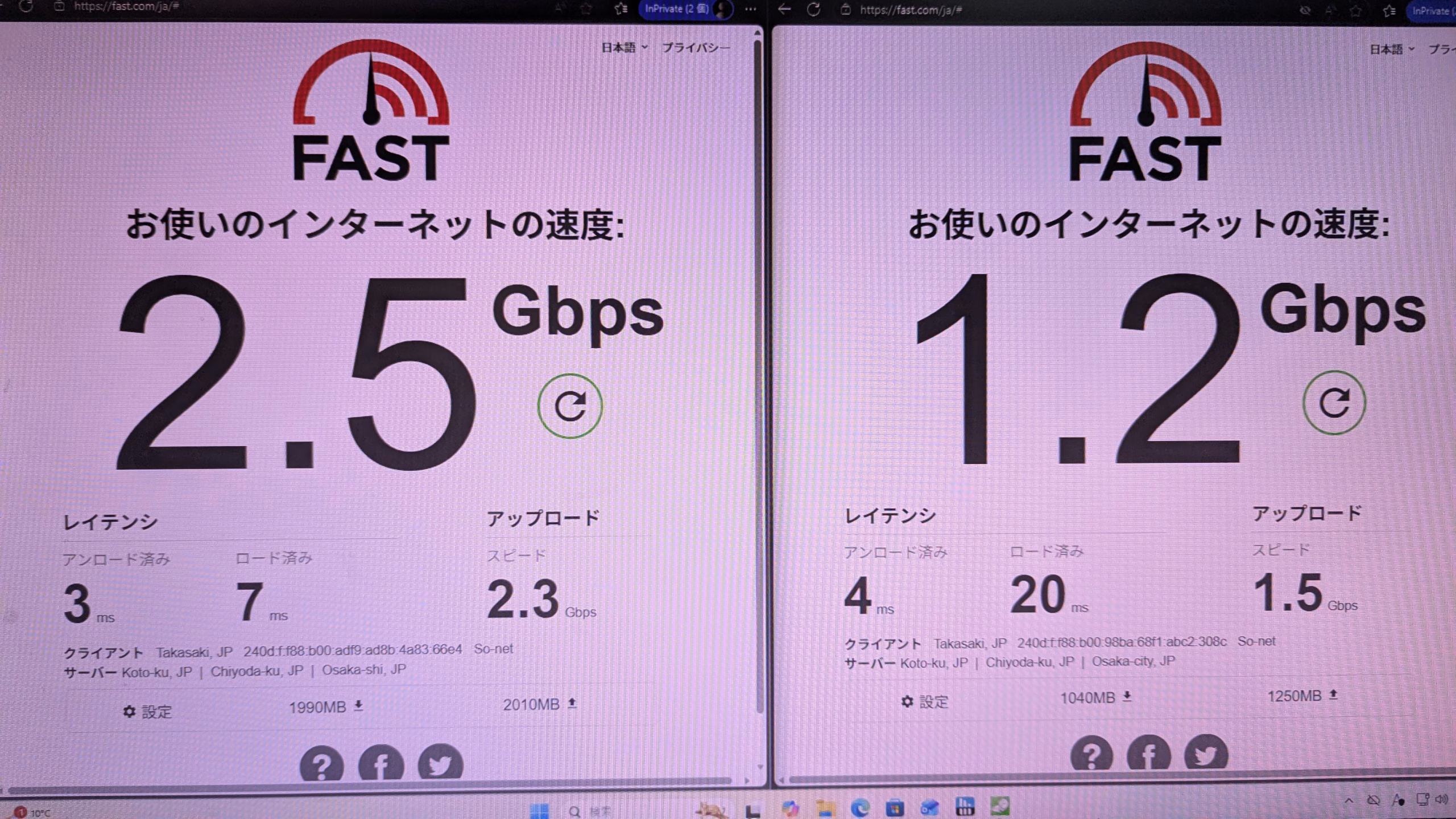 LAN通信速度 画像参照 画像1つ目有線LAN、2つ目がある場合無線LAN