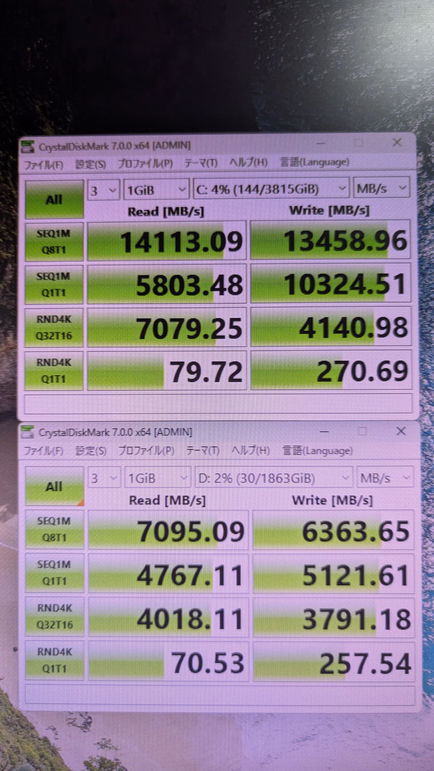 ストレージ読み込み速度 14113 7095 SSD HDDは省略