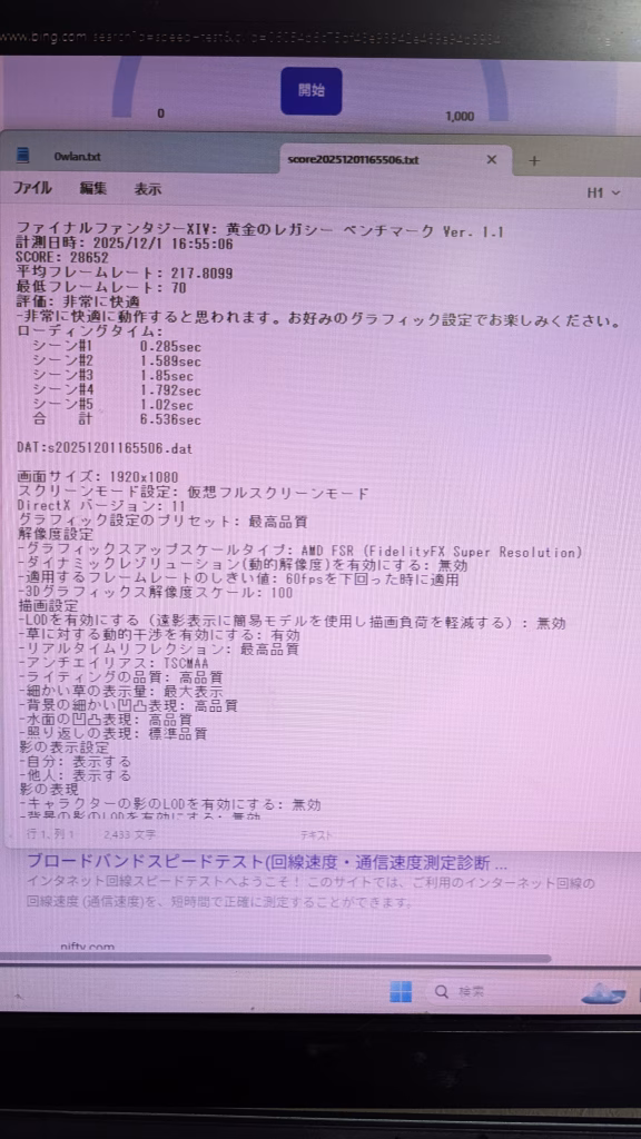 FF14 FHD 最高画質28652 平均フレームレート 217