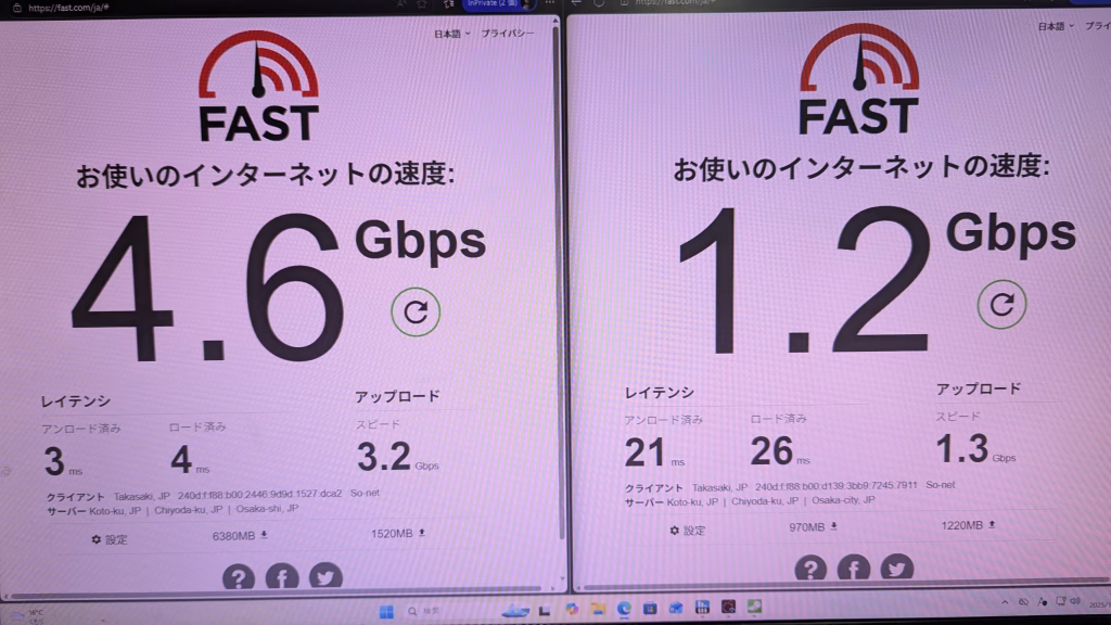 LAN通信速度 画像参照 画像1つ目有線LAN、2つ目がある場合無線LAN
