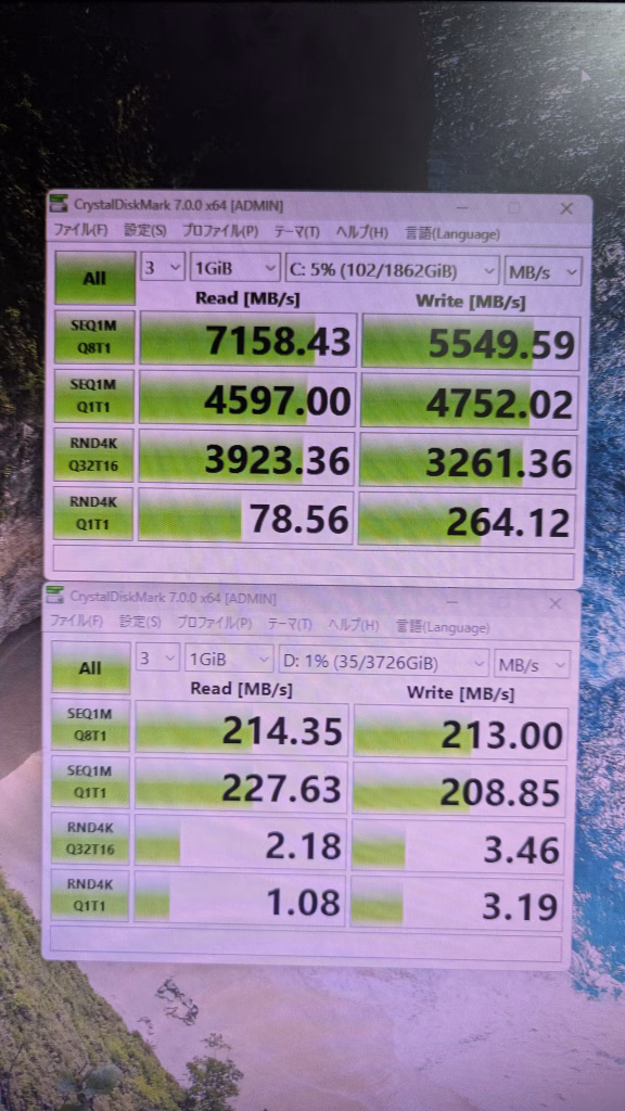 ストレージ読み込み速度 7158 SSD HDDは省略