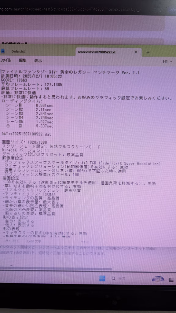 FF14 FHD 最高画質17663 平均フレームレート 127