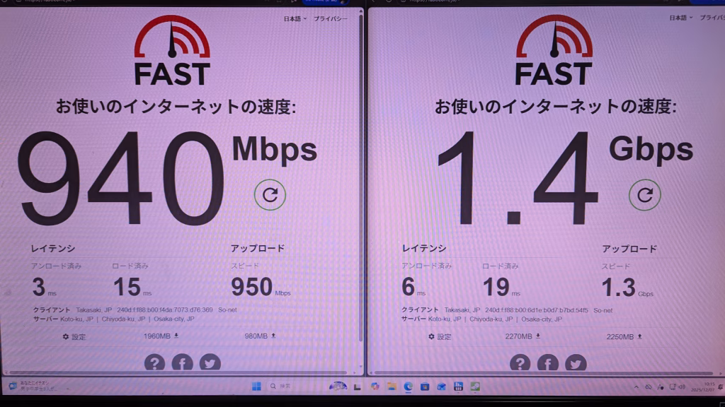 LAN通信速度 画像参照 画像1つ目有線LAN、2つ目がある場合無線LAN