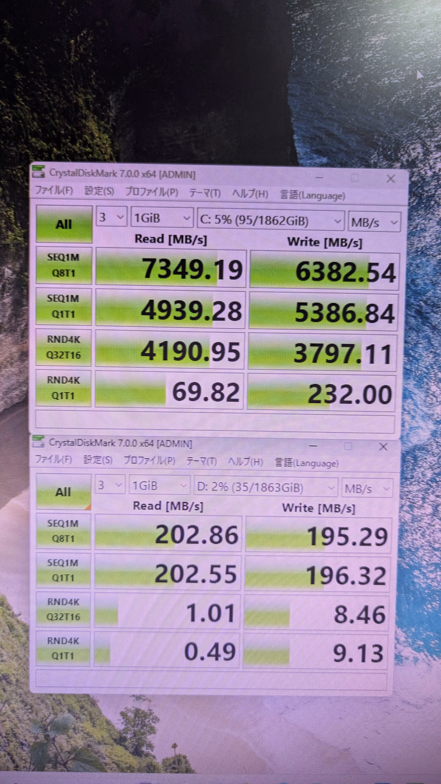ストレージ読み込み速度 7349 SSD HDDは省略