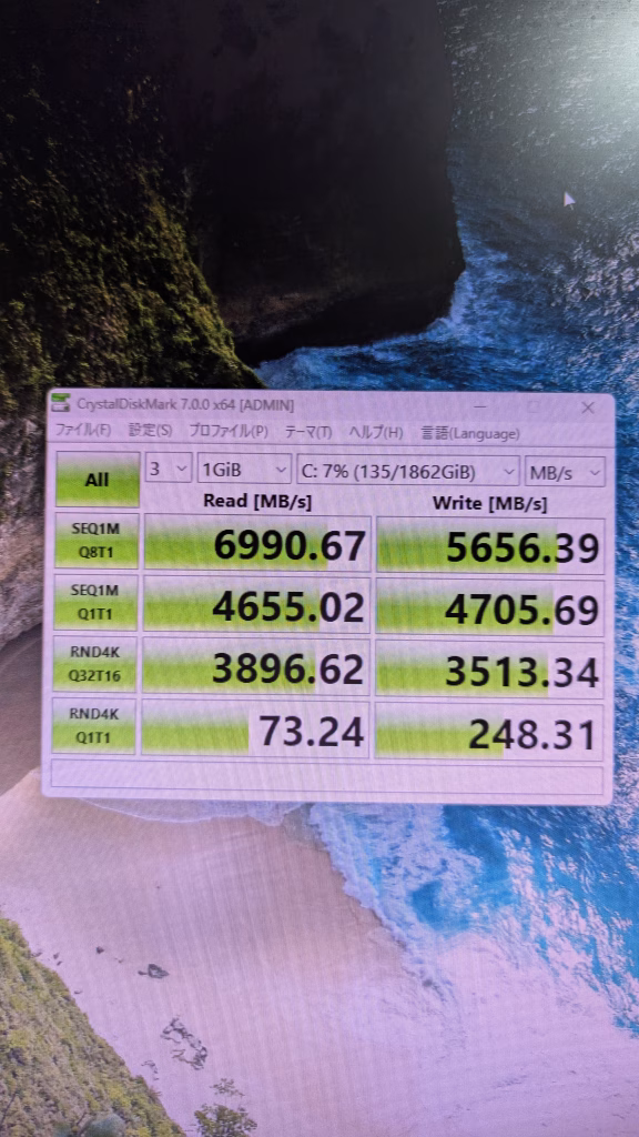ストレージ読み込み速度 6990 SSD HDDは省略