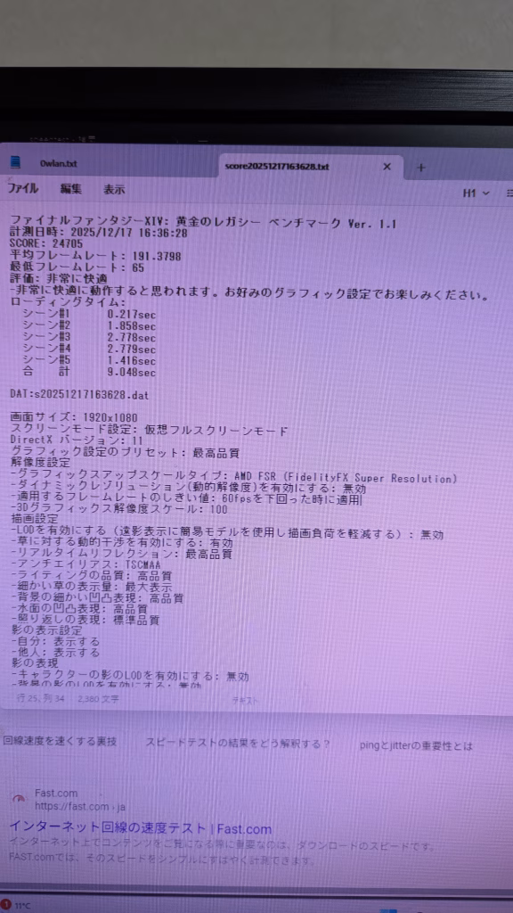 FF14 FHD 最高画質24705 平均フレームレート 191