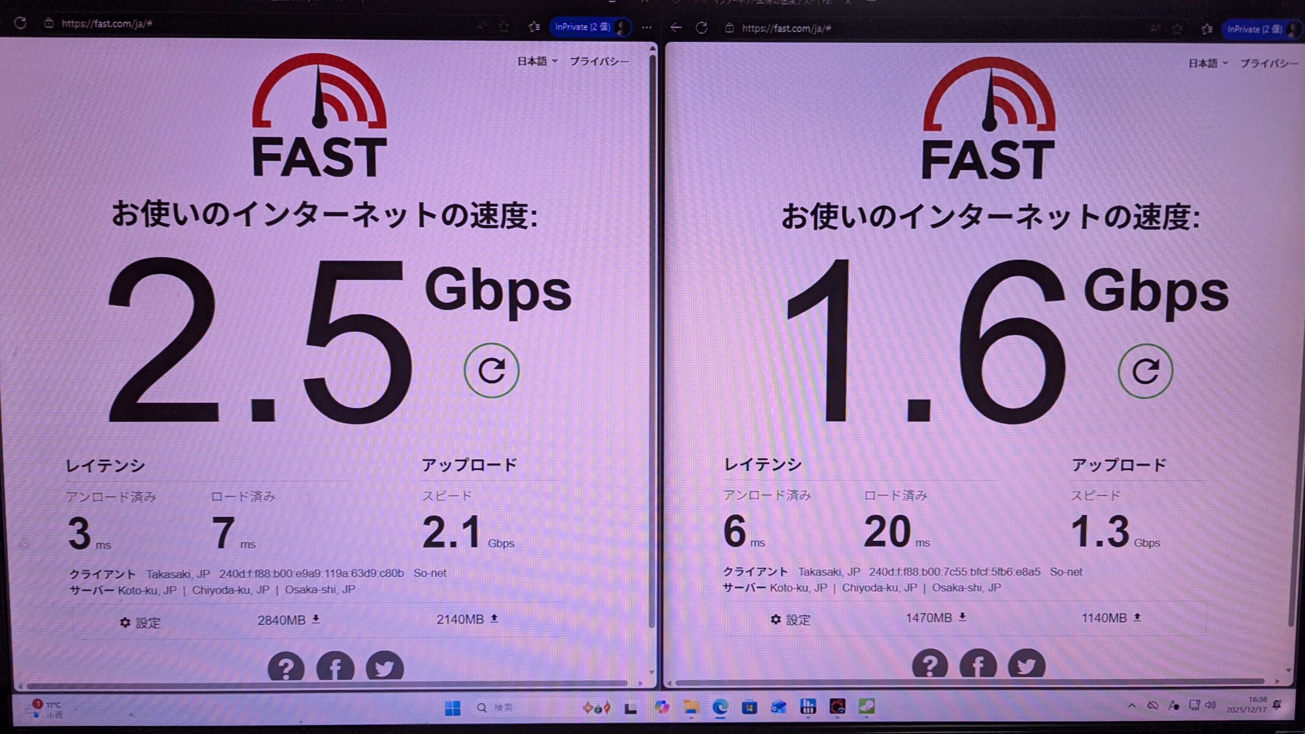 2025/12/17時点のWindows updateとチップセットドライバー、GPUドライバーで計測しております。