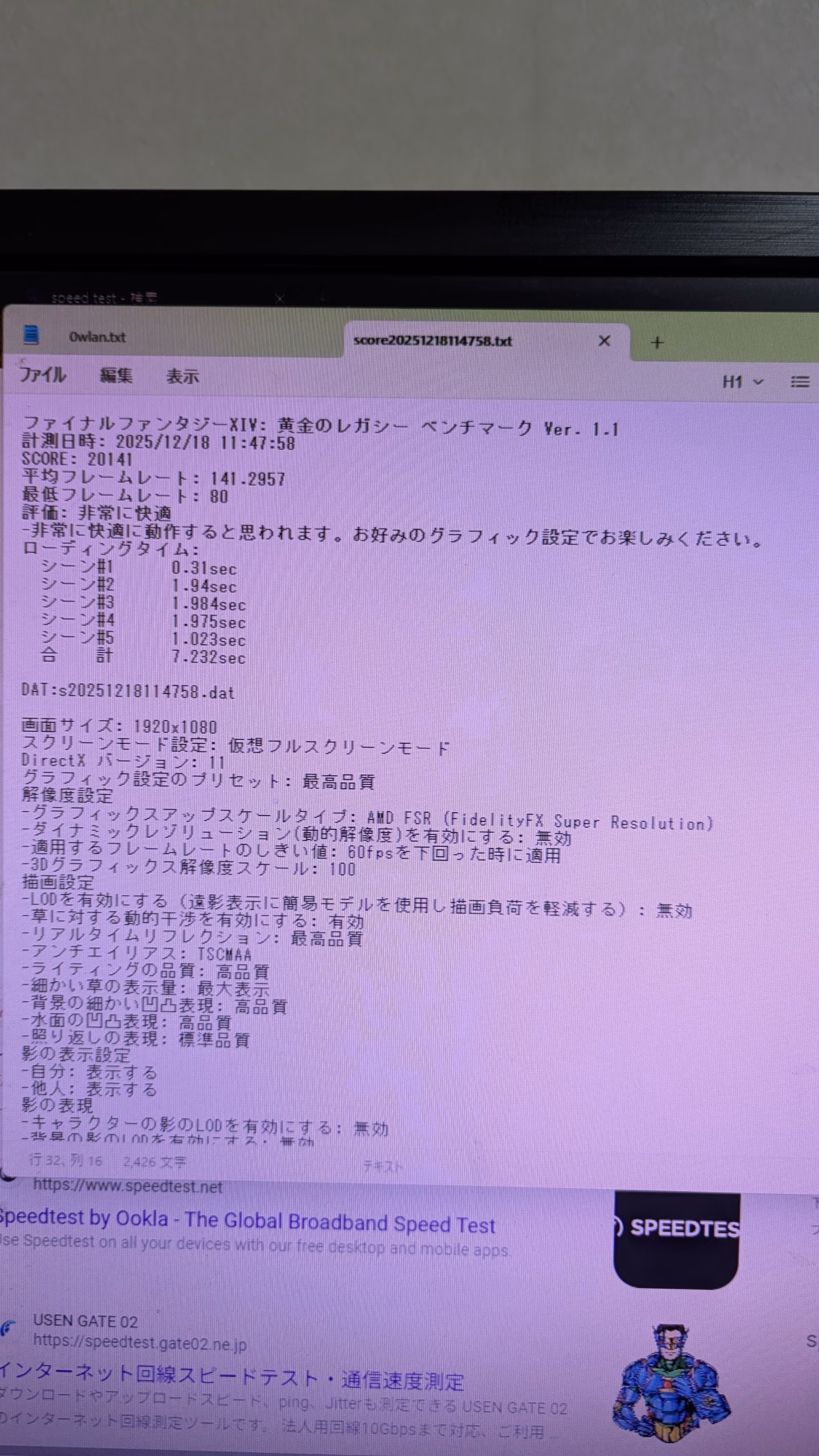 FF14 FHD 最高画質20141 平均フレームレート 141