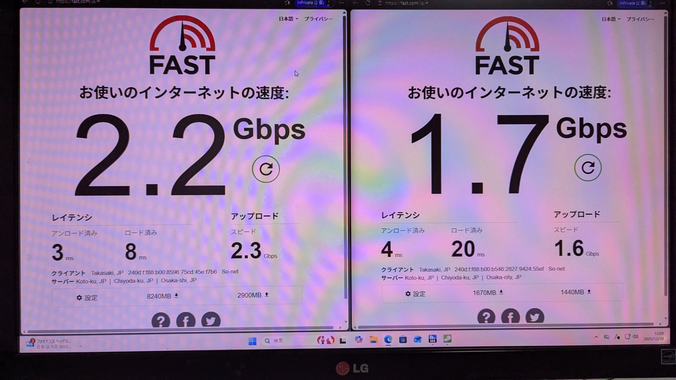 LAN通信速度 画像参照 画像1つ目有線LAN、2つ目がある場合無線LAN