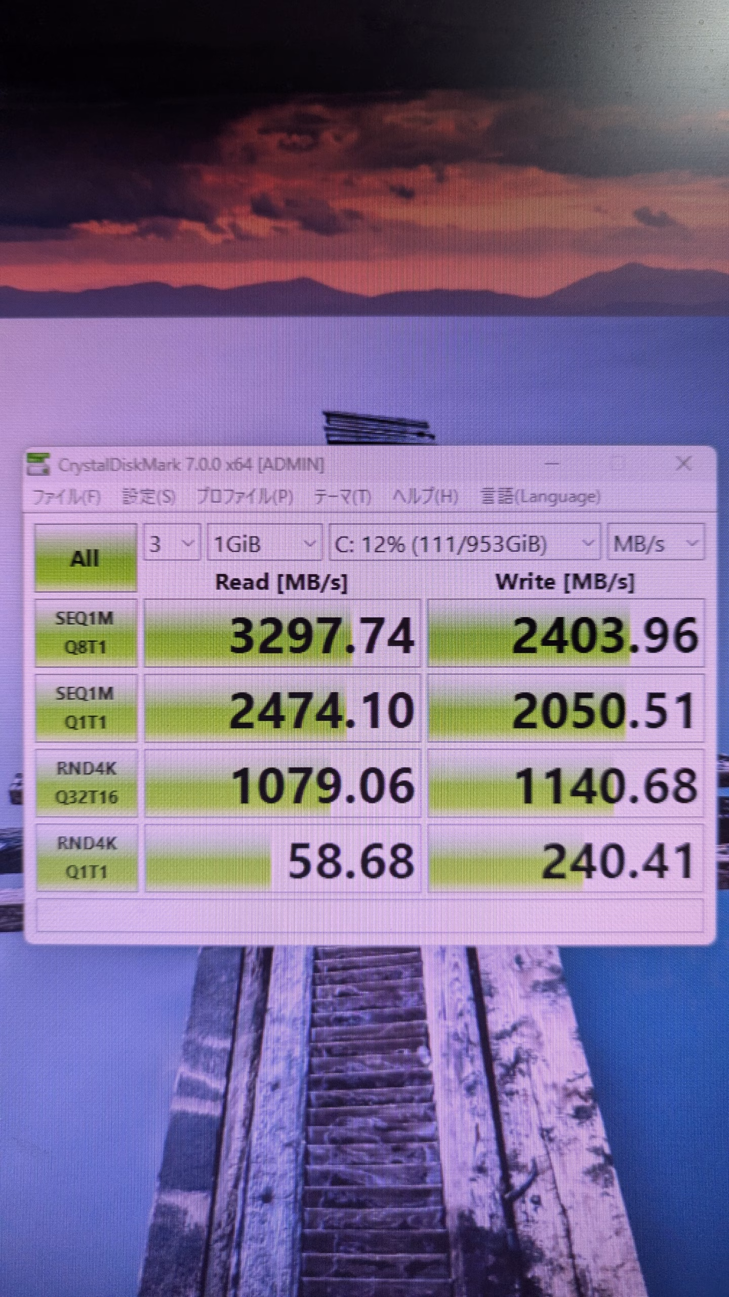 ストレージ読み込み速度 3297 SSD HDDは省略