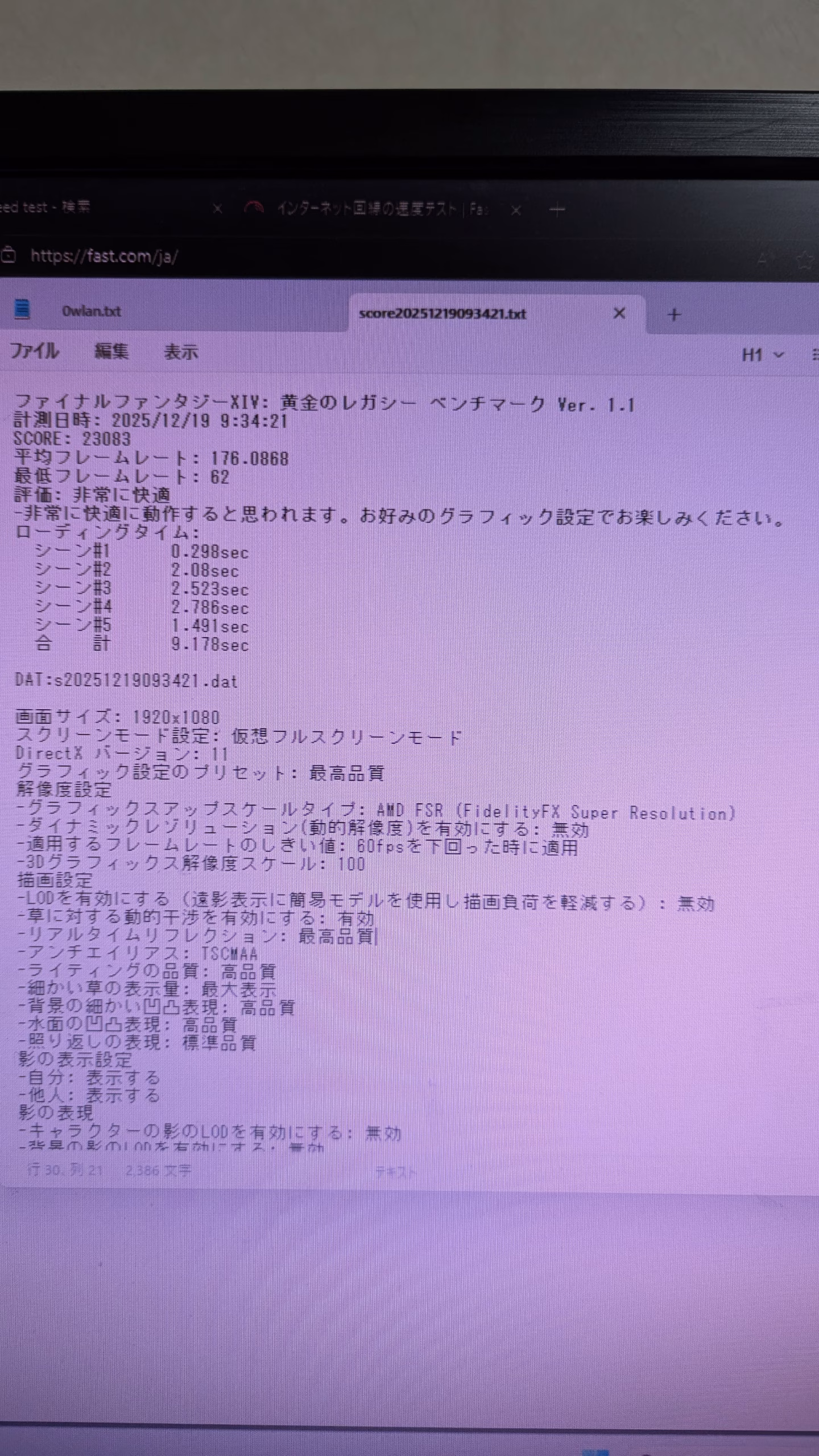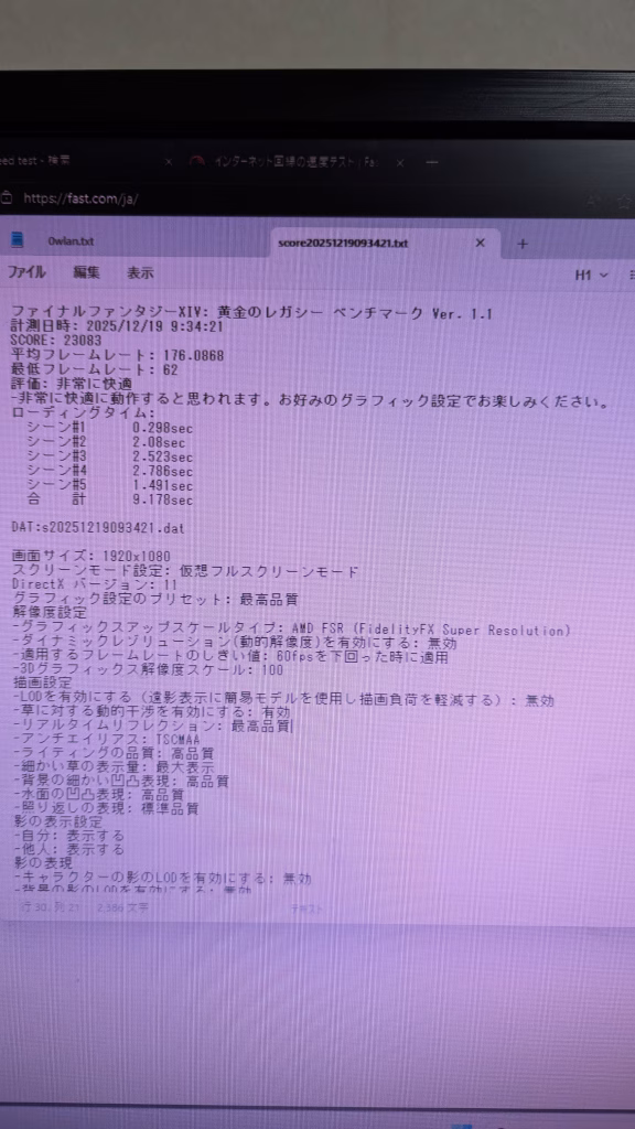 FF14 FHD 最高画質23083 平均フレームレート 176