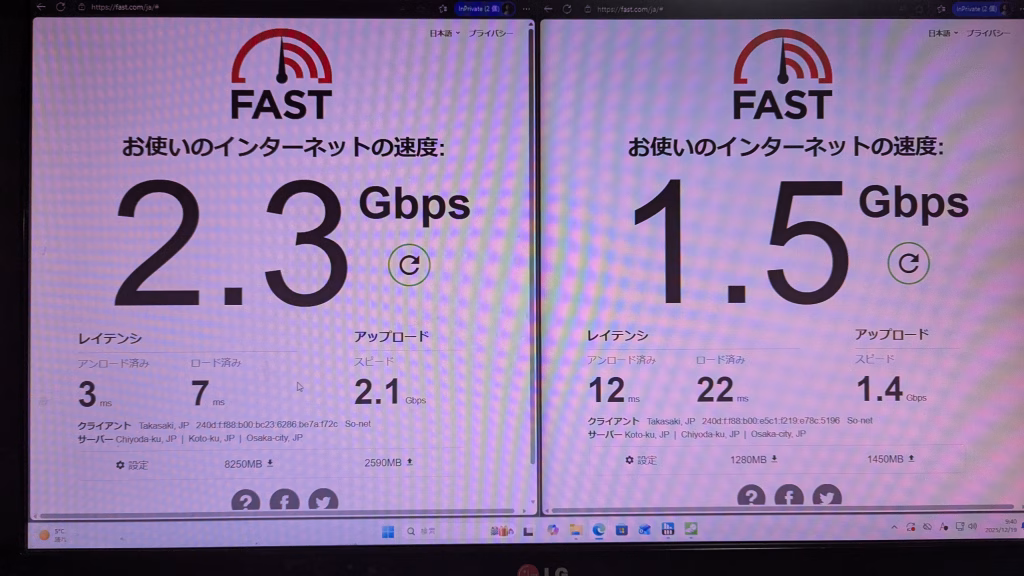 LAN通信速度 画像参照 画像1つ目有線LAN、2つ目がある場合無線LAN