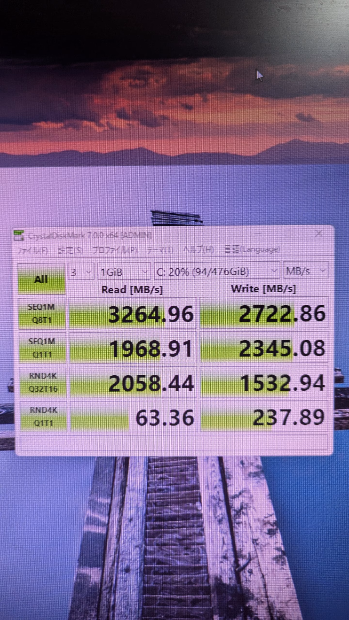 ストレージ読み込み速度 3264 SSD HDDは省略