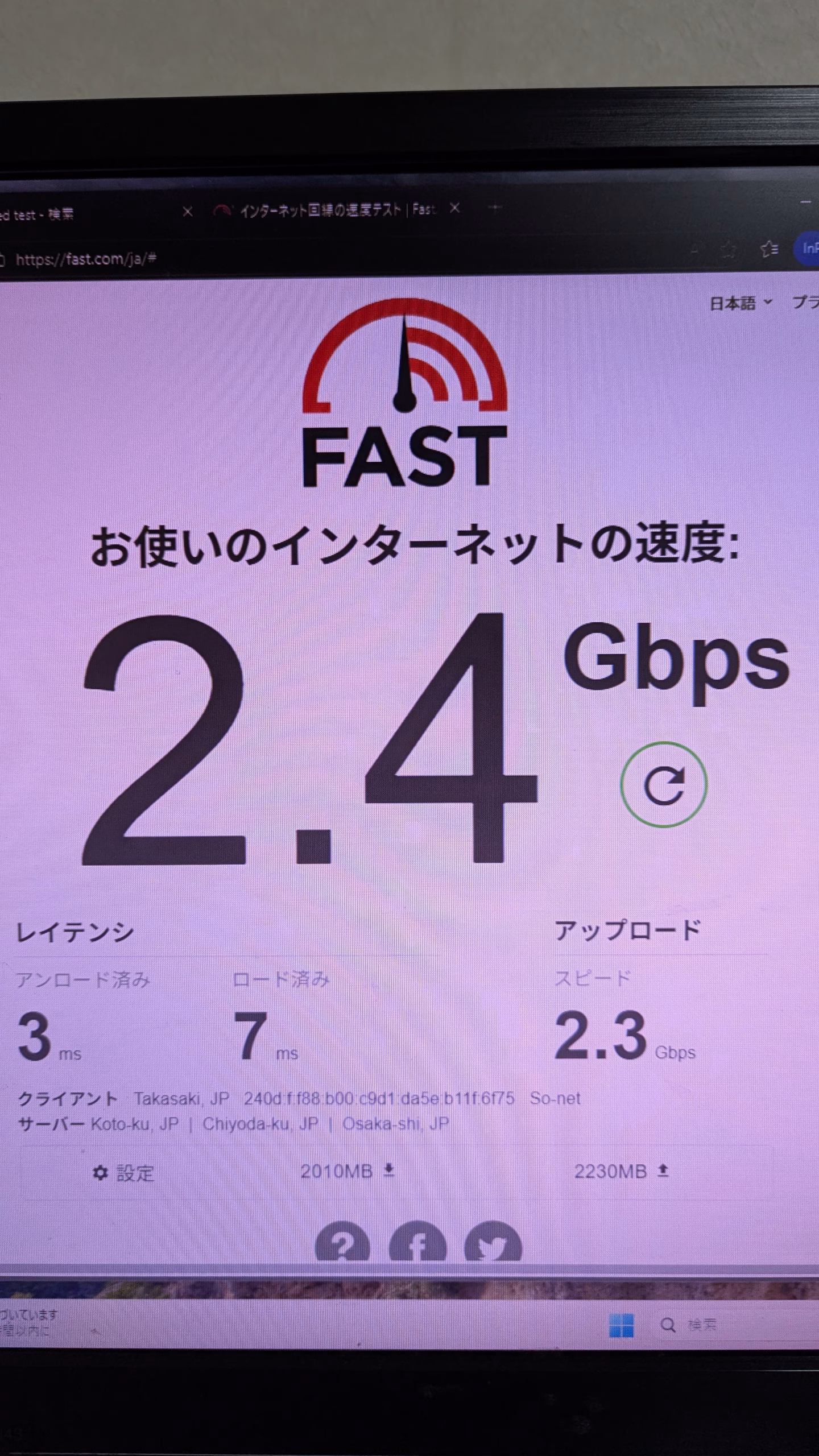 LAN通信速度 画像参照 画像1つ目有線LAN、2つ目がある場合無線LAN