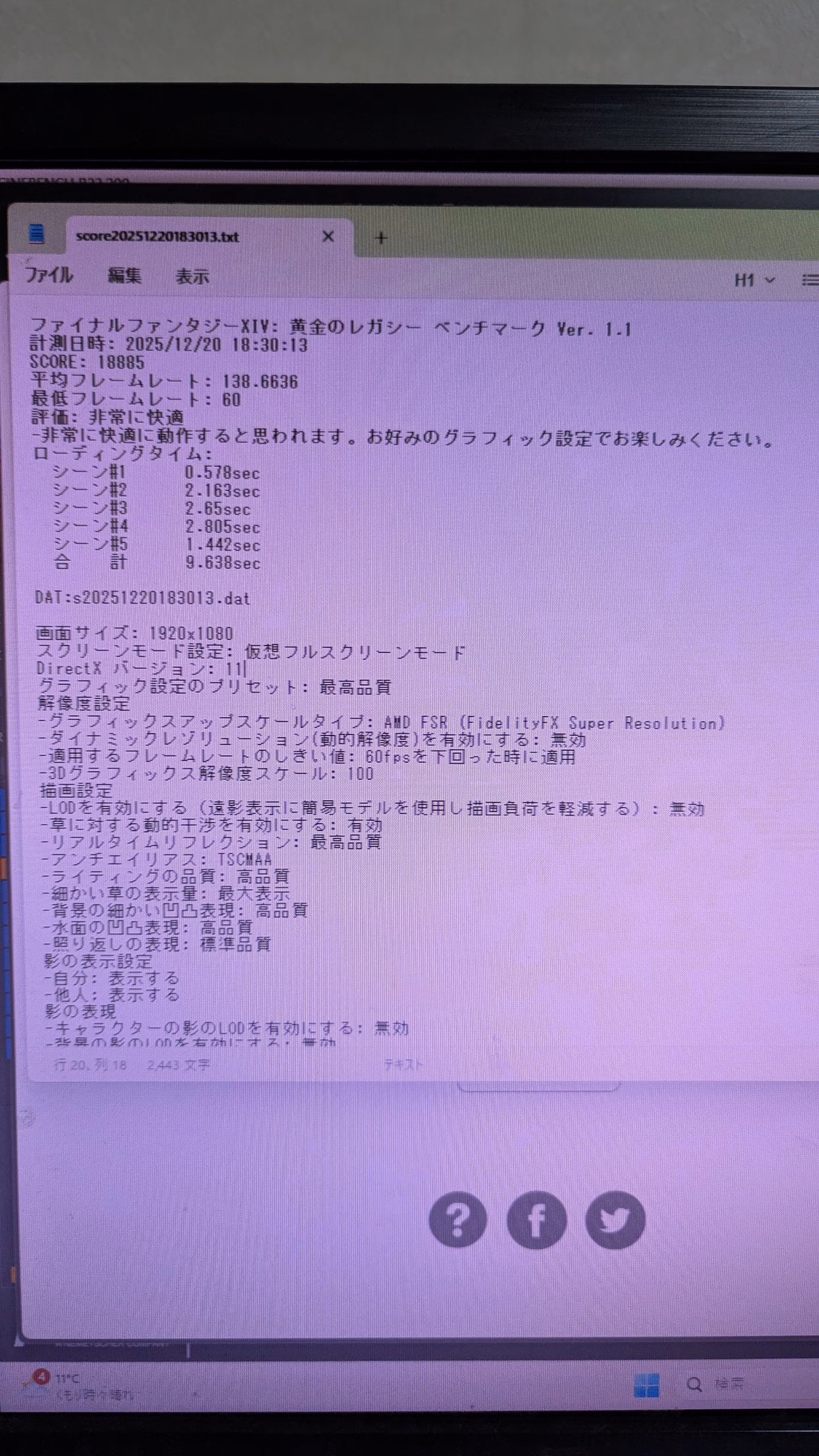 FF14 FHD 最高画質18885 平均フレームレート 138