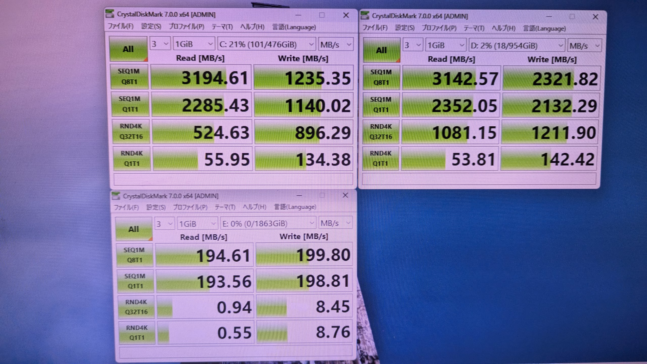 ストレージ読み込み速度 SSD 3194 3142 HDDは省略