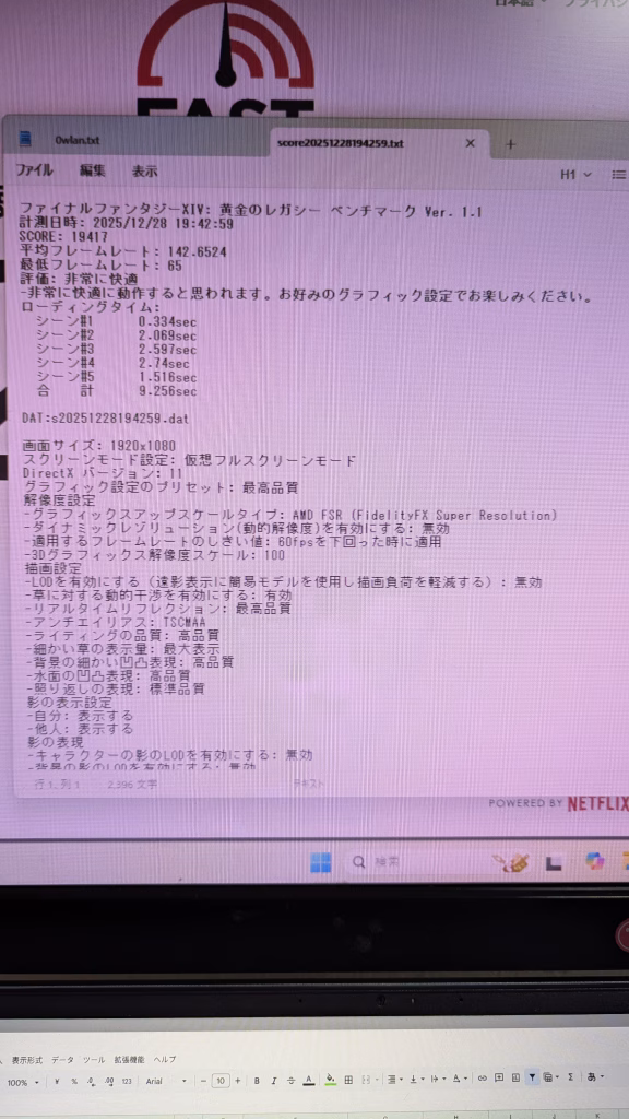 FF14 FHD 最高画質19417 平均フレームレート 142