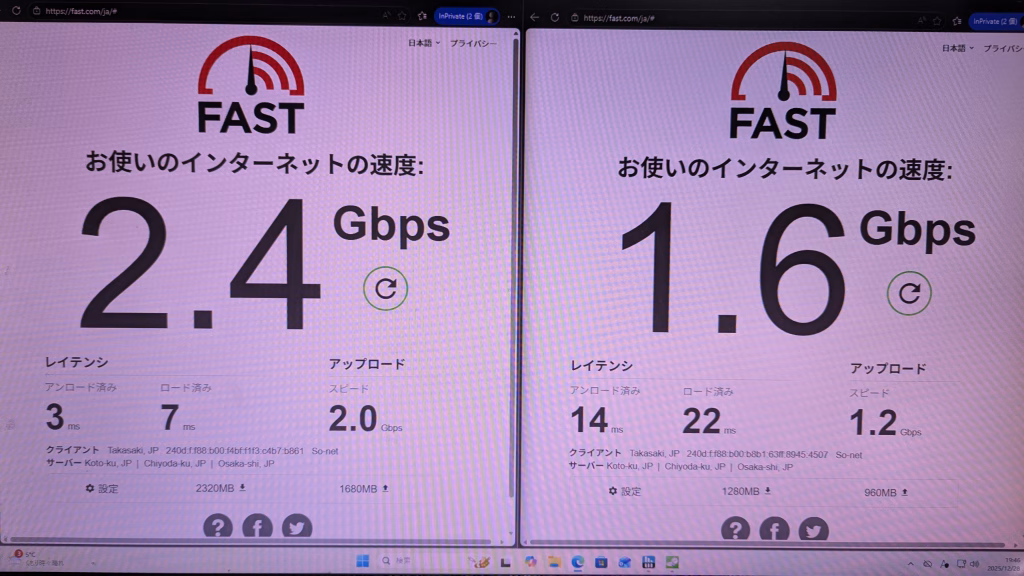LAN通信速度 画像参照 画像1つ目有線LAN、2つ目がある場合無線LAN