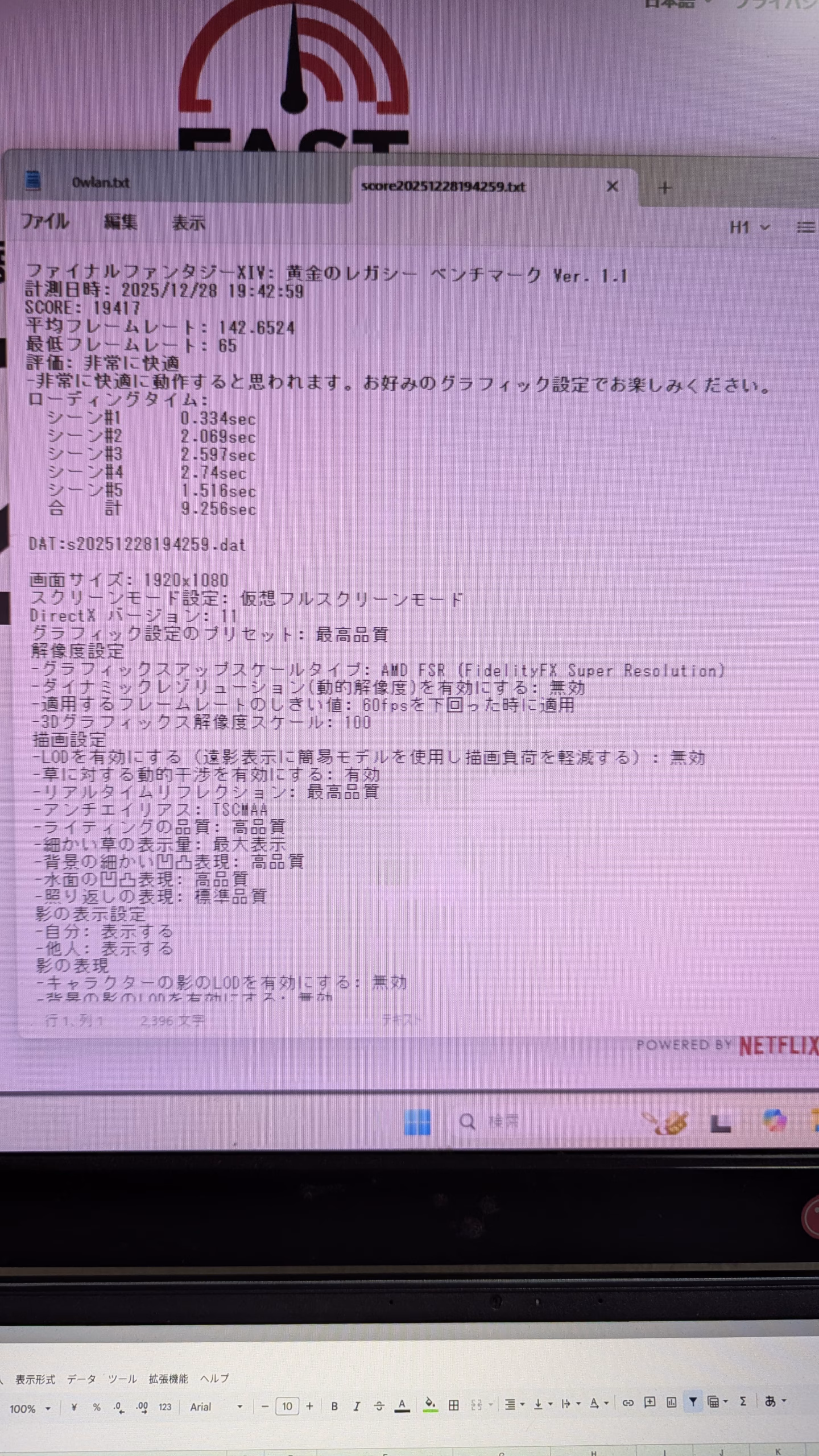 FF14 FHD 最高画質19417 平均フレームレート 142