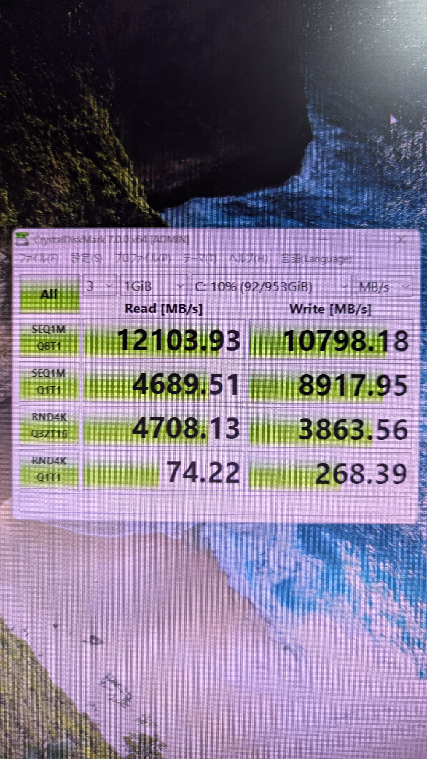 ストレージ読み込み速度 SSD 12103 HDDは省略