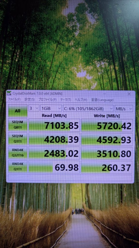 ストレージ読み込み速度 SSD 7103 HDDは省略