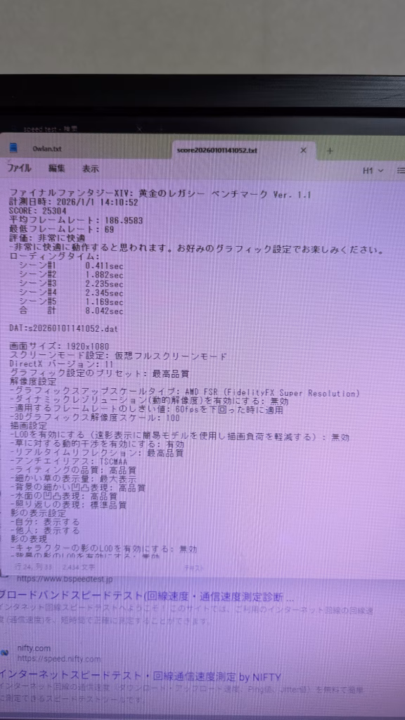 FF14 FHD 最高画質25304 平均フレームレート 186