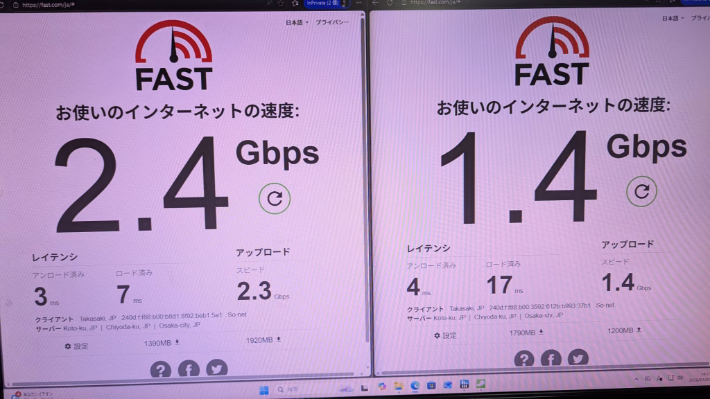 LAN通信速度 画像参照 画像1つ目有線LAN、2つ目がある場合無線LAN