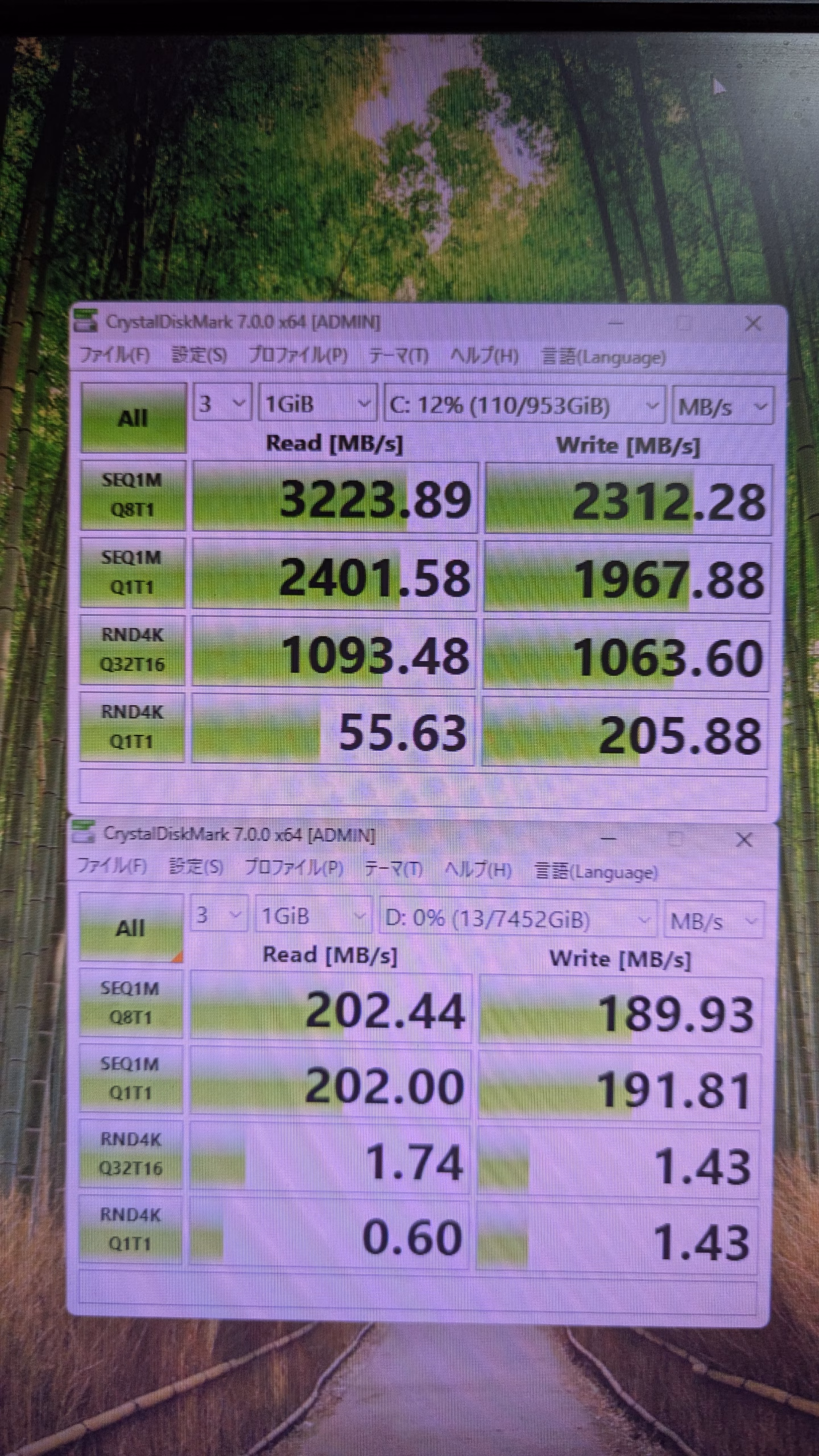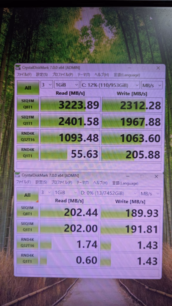 ストレージ読み込み速度 SSD 3223 HDDは省略