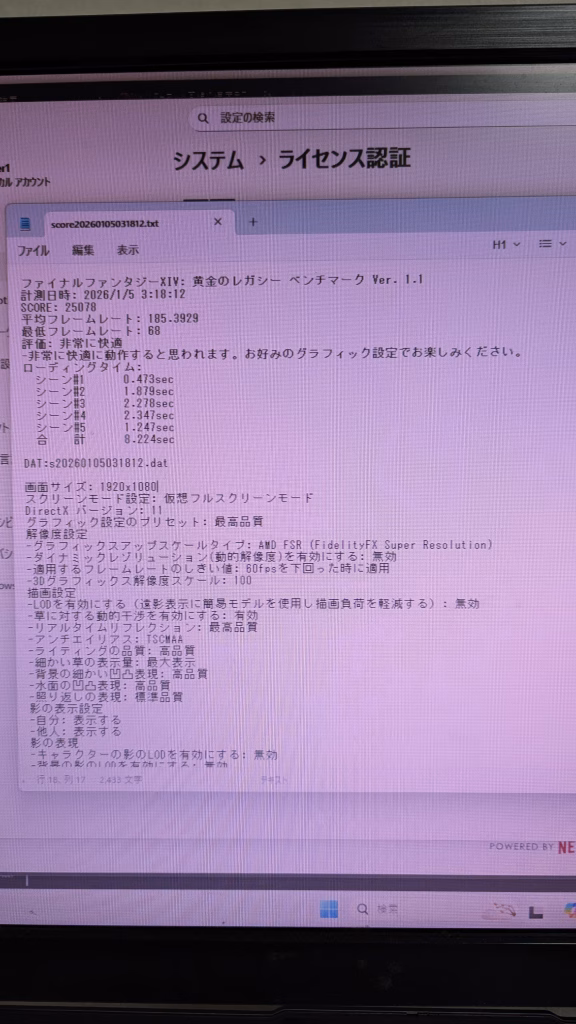 2026/01/05時点のWindows updateとチップセットドライバー、GPUドライバーで計測しております。