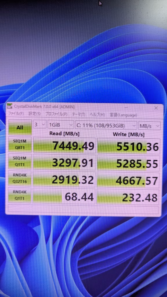 ストレージ読み込み速度 SSD 7449 HDDは省略